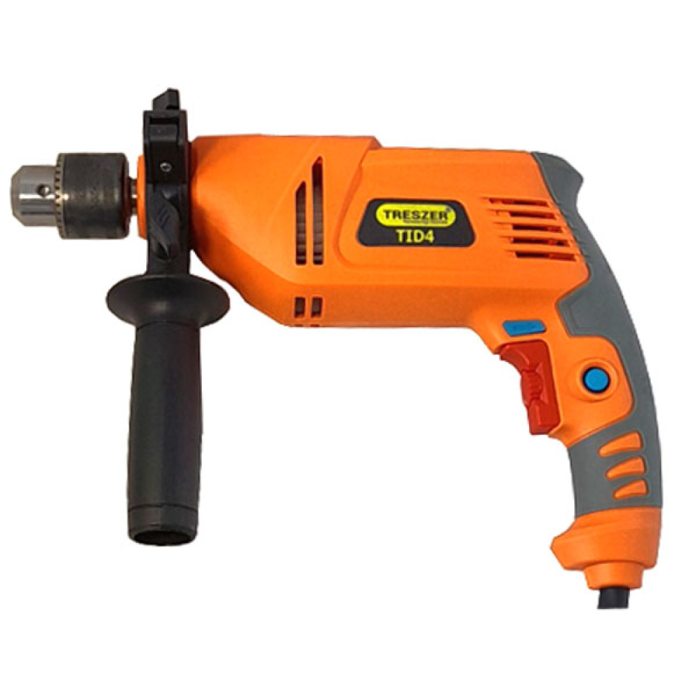 TRESZER TID4 - ударний електричний дриль професійного класу, призначений для свердління отворів в деревині, металі та ударного свердління в бетоні та камені. Також, цей дриль може використовуватися як шурупокрут, для загвинчування шурупів а та саморізів у різні типи відповідних матеріалів.