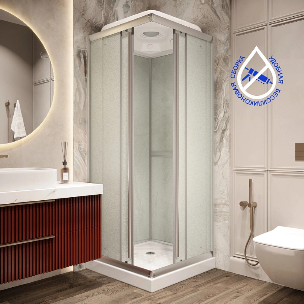 Удобство уборки. Створки кабины закрываются плотно, вода не попадает на пол и другие поверхности, находящиеся в непосредственной близости. Все части, необходимые для проведения влажной уборки, доступны.