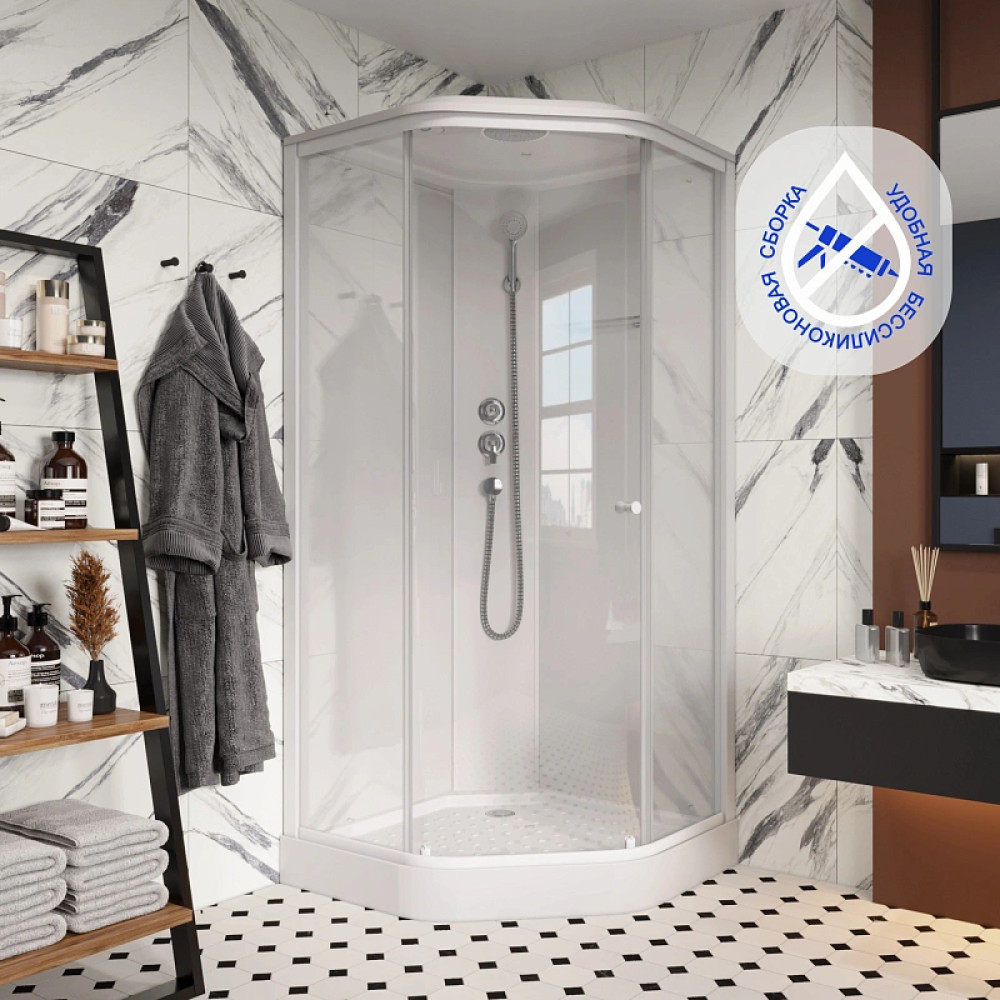 Удобство уборки. Створки кабины закрываются плотно, вода не попадает на пол и другие поверхности, находящиеся в непосредственной близости. Все части, необходимые для проведения влажной уборки, доступны.