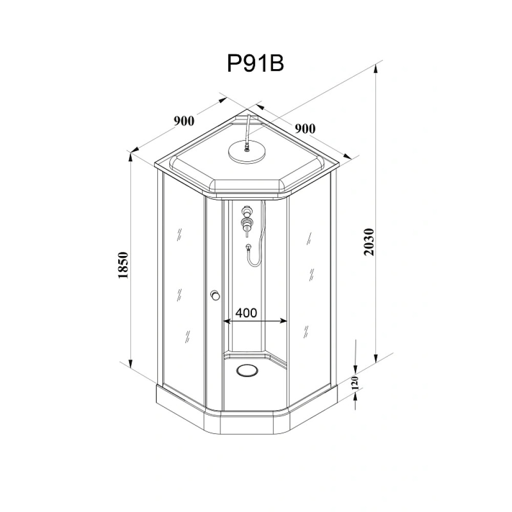 Душевая кабина P91B бренда PARLY, размер 90х90х215см